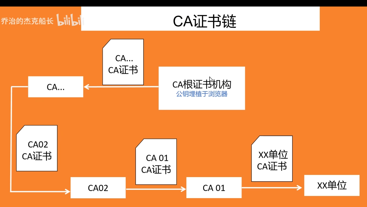 - 如何保证CA的权威性:每次都由更高一级的CA来给低一级的CA机构发证书来担保,最高可追溯到CA根证书机构
