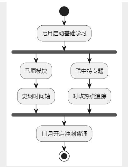 | 专业课强化期(8-9月)| 政治马原模块 | 晚休前40min |