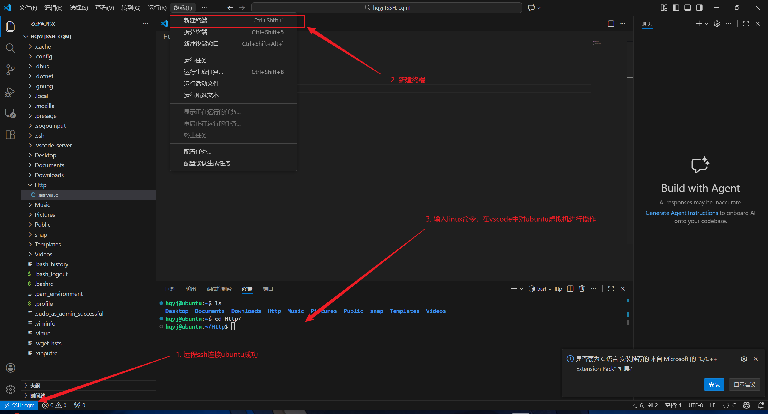 $ ls /dev/ttyS0 //查看COM2串行通信端口在Ubuntu中的设备文件名4、vscode远程连接Ubuntu