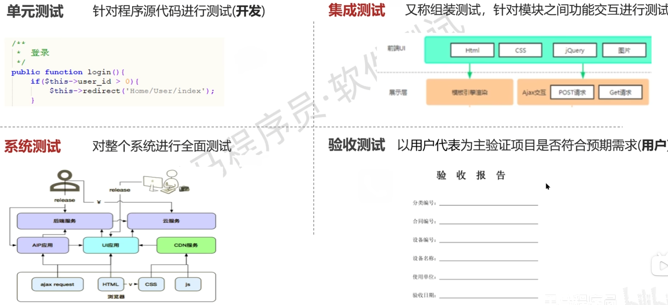 - 单元测试:通常由开发人员自己完成,但测试人员需要了解进度和质量。可以关注开发的自测通过率或单元测试覆盖率。
