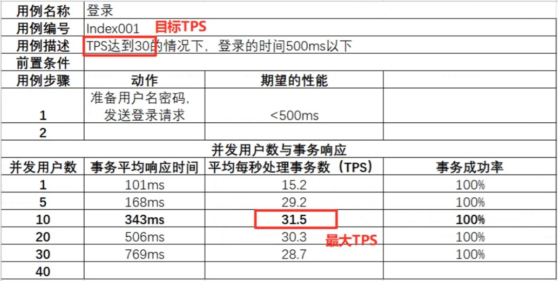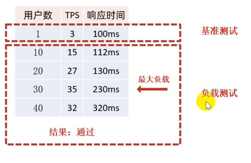 - 找出系统的最大TPS,与需求进行对比,达标则通过