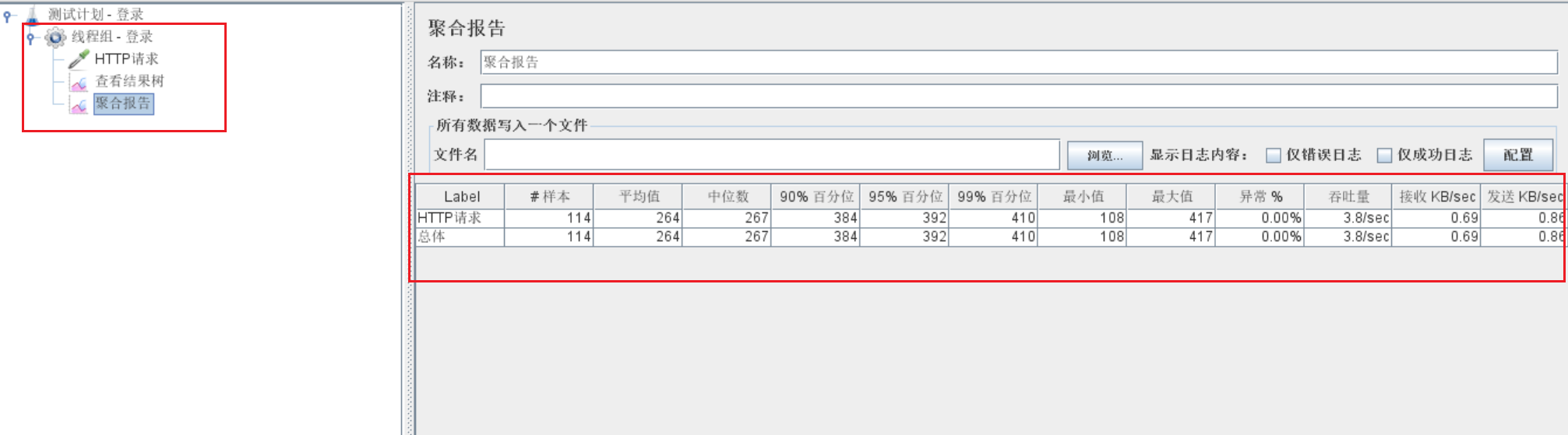 将聚合报告统计结果记录到表格中