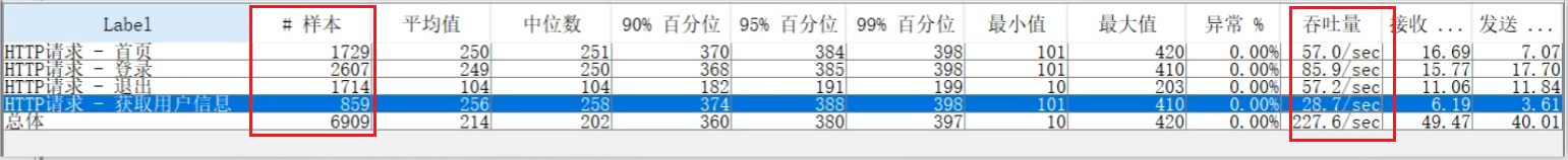 - 监听器-聚合报告 --> 查看性能测试的指标数据