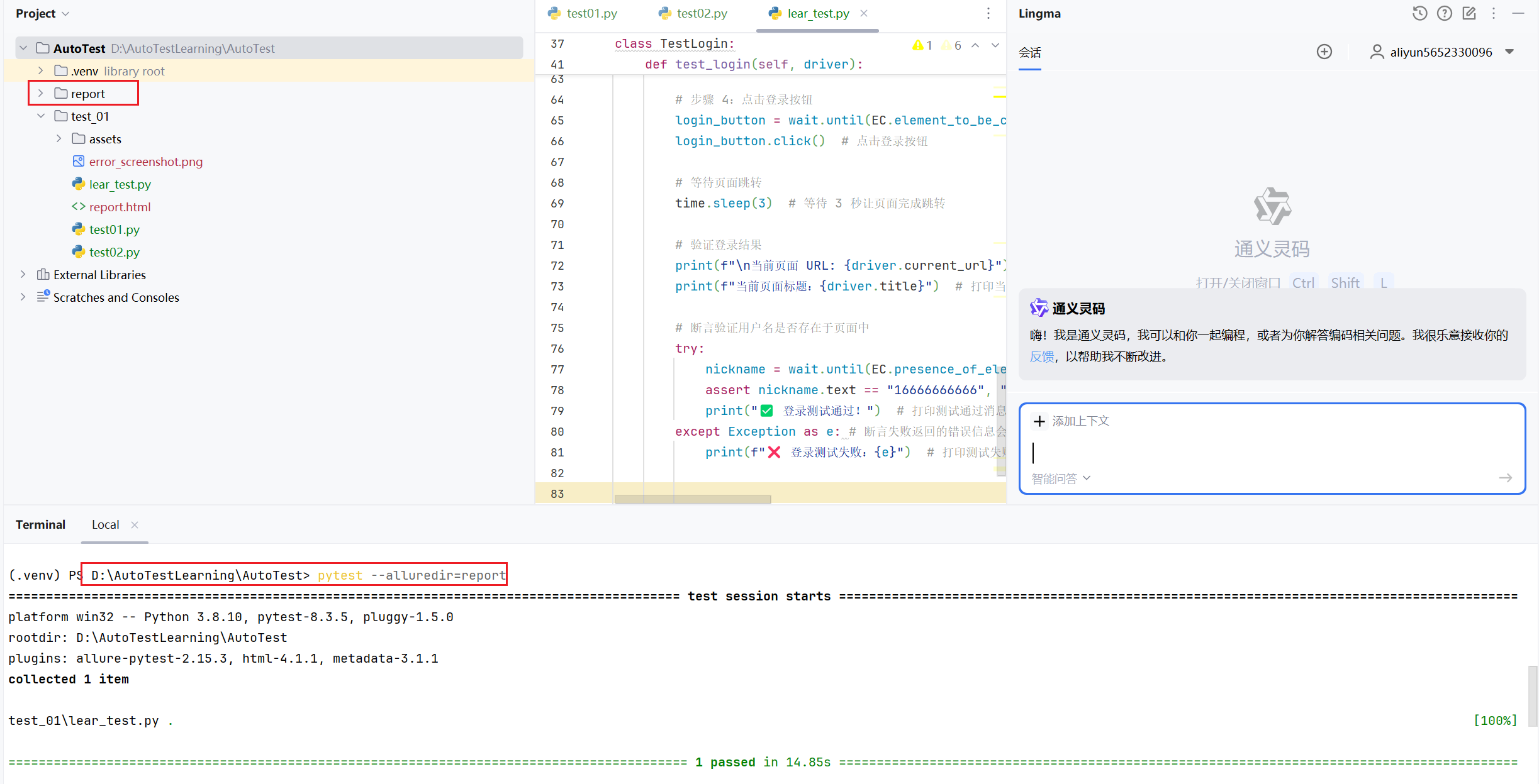 pytest --alluredir=report- 表示将测试报告存储到当前目录的report文件夹下,若没有report文件夹,则自动创建一个