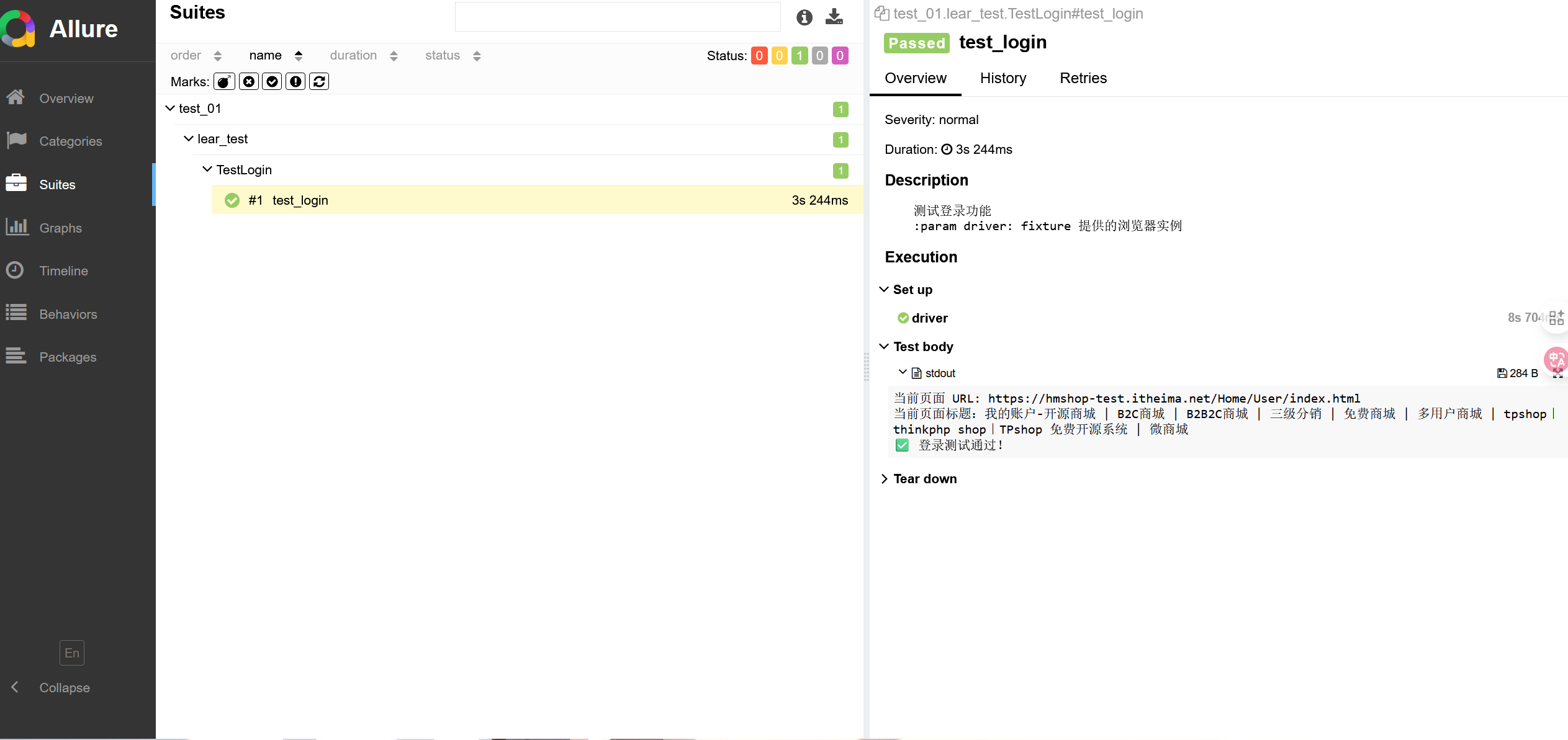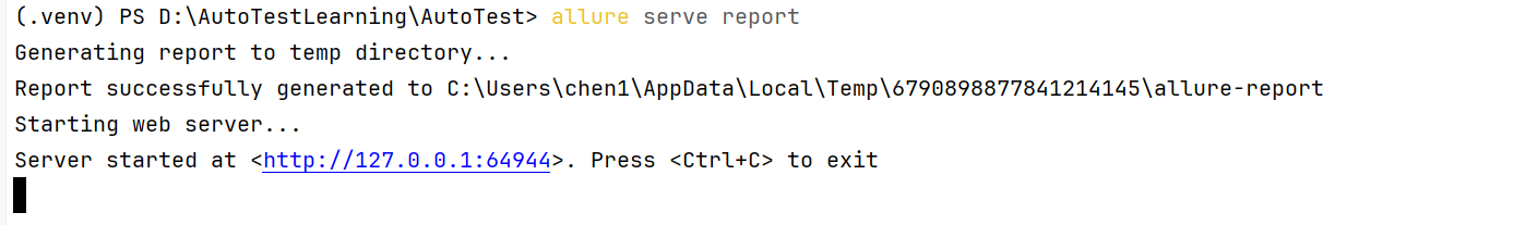 - 需要注意的是,Allure使用的是本地网络地址,若不再使用allure,记得在后台CTRL+C关闭服务