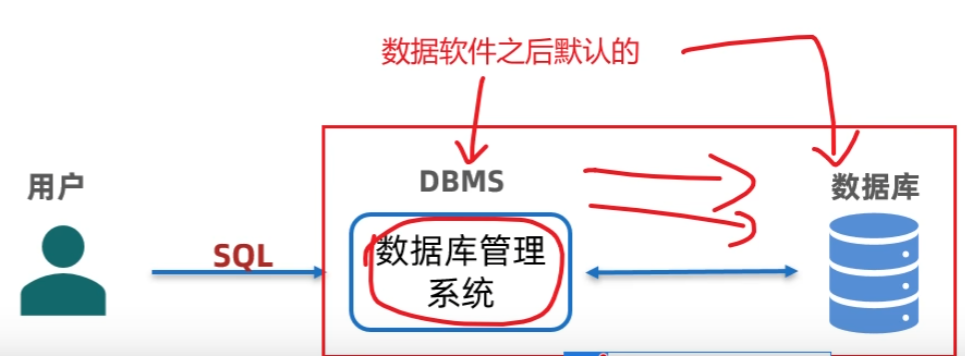 - 数据库管理系统是下载MySQL、Oracle、Redis等数据库后默认自带有的,默认其中有数据库,也可以通过DBMS创建修改数据库