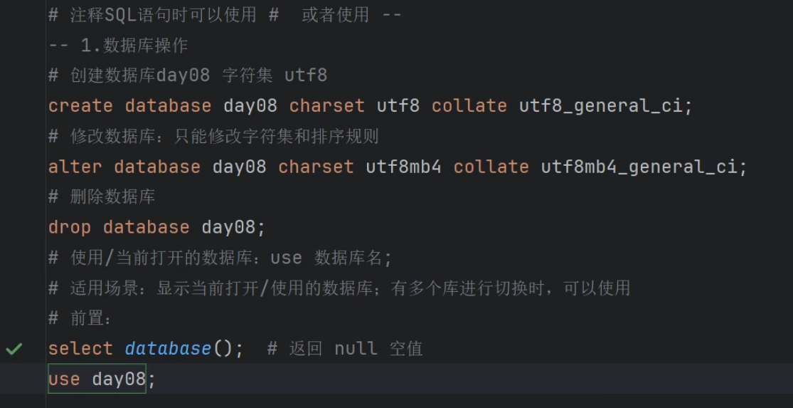 alter database 库名 charset 字符集 collate 排序规则; - 删除数据库: