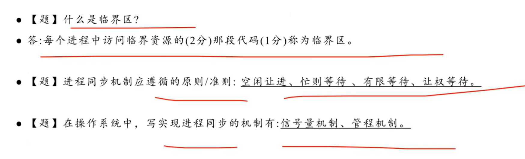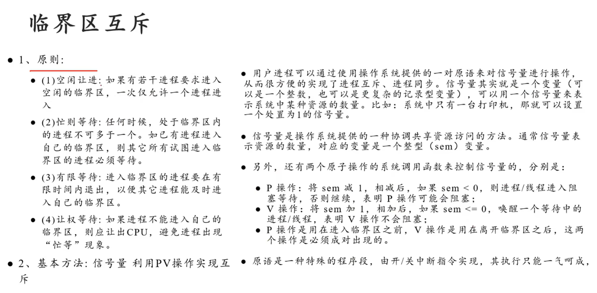 - 临界资源:一次仅允许一个进程使用的资源