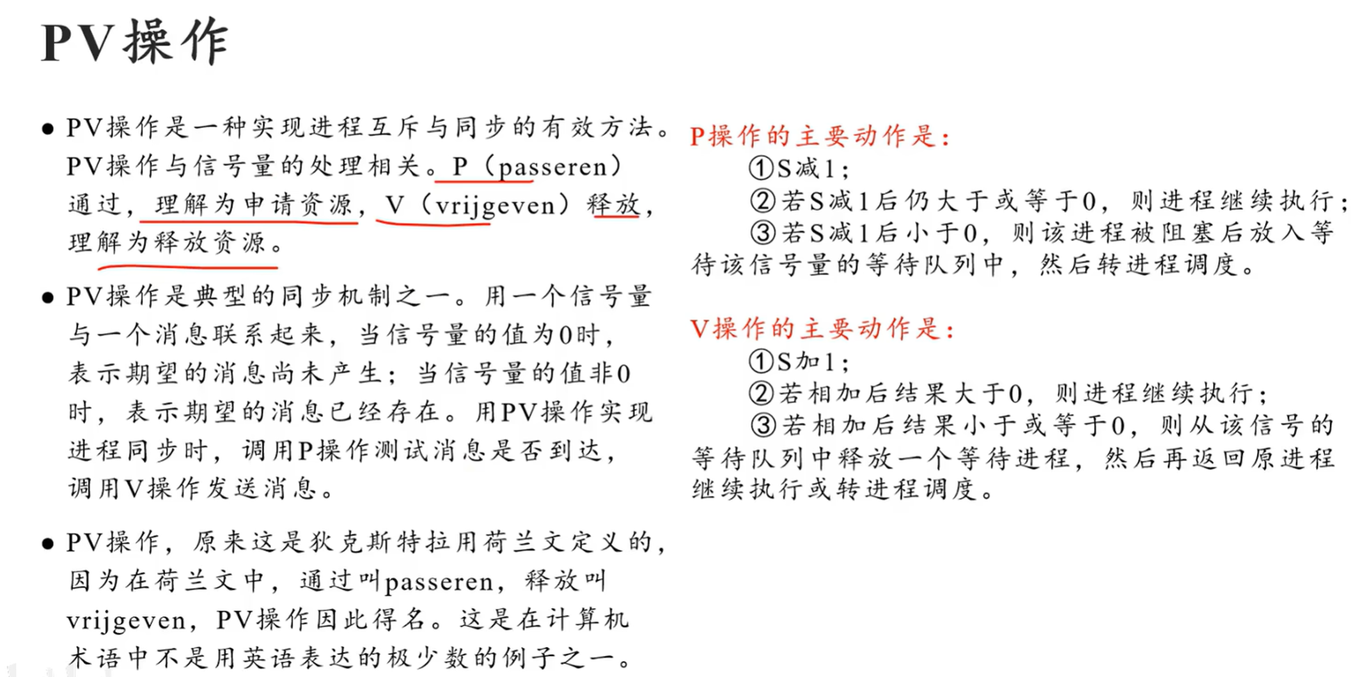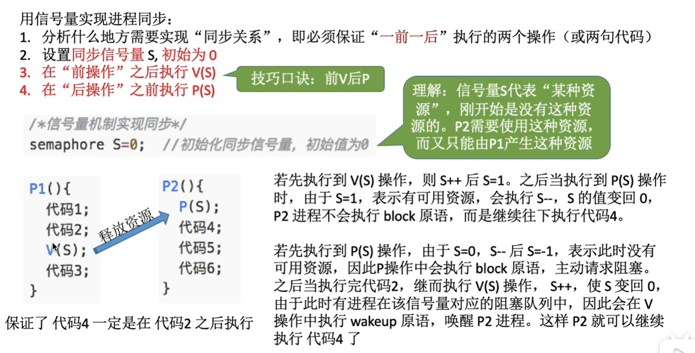 - 如图:“前操作”是指必须执行在前的操作,所以在前操作之后需要进行V操作,产生可用资源,或释放阻塞进程;“后操作”同理