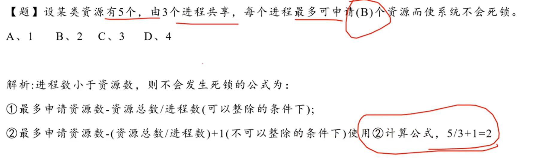 - 可以整除情况下:最多申请资源数 = 资源总数/进程数