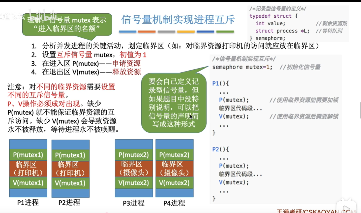 - 如果有多个临界资源,则要设计多个互斥信号量
