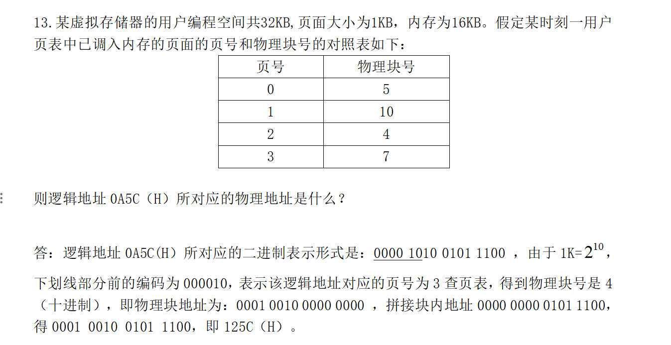 - 物理地址 = 块号 * 块大小 + 块内地址(页内偏移地址)