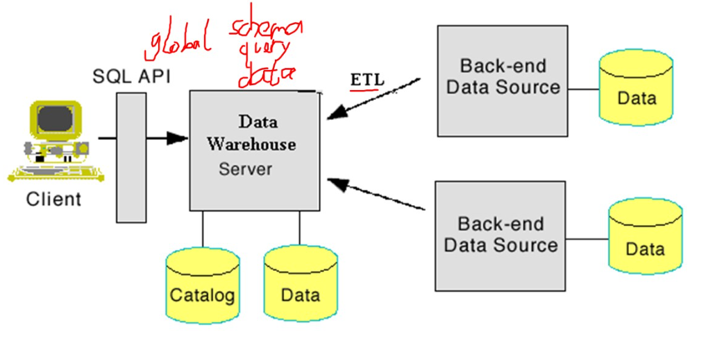 存储数据的方式有两种常见的架构,分别是:联邦数据库与数据仓库
