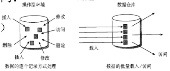 • 特定分析领域数据与传统数据库中的数据不同,它们是对传统数据库中的数据进行了抽取、加工和总结而形成的