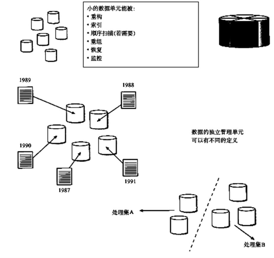 • 数据仓库:可将小粒度的数据存储在低速存储器上;大粒度的数据存储在高速存储器上