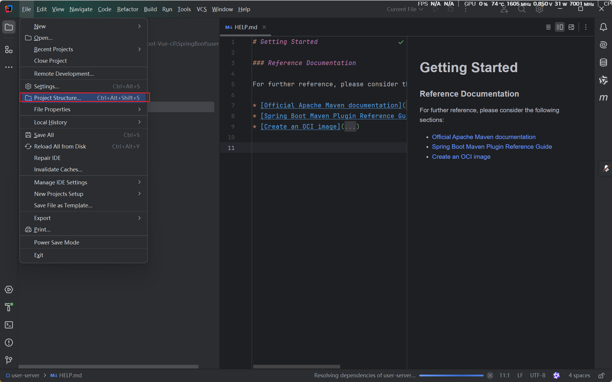 - 创建完成项目后,如图两个文件不可删除,否则项目会崩溃