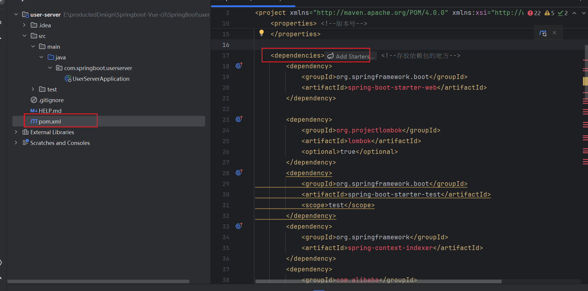 - 将pom.xml文件中的depencies标签下的所有内容替换为老师所提供的依赖.txt文件中的依赖包