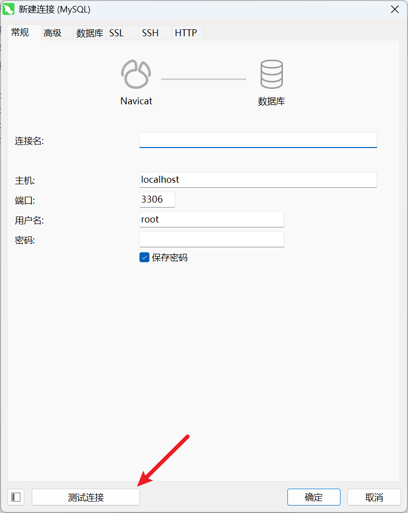创建连接时,输入连接名与密码后,用户名默认root,必须要先测试连接,连接成功后才能继续创建 若先前已经创建过用户名为root的连接,则密码为先前设置的密码