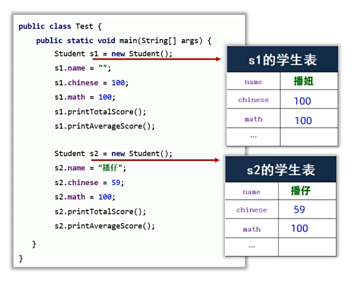 s1.printAllScore(); // 直接调用,更加便利,减少对重复代码的编写