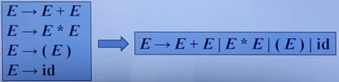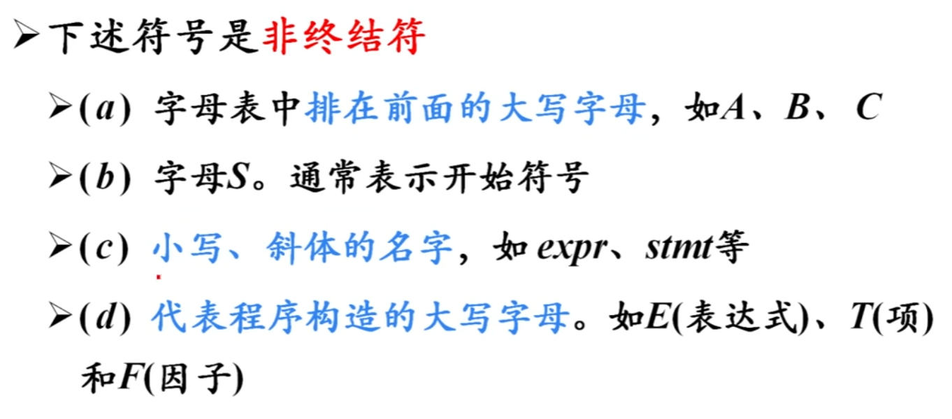 - 除非特别说明,第一个产生式的左部就是开始符号