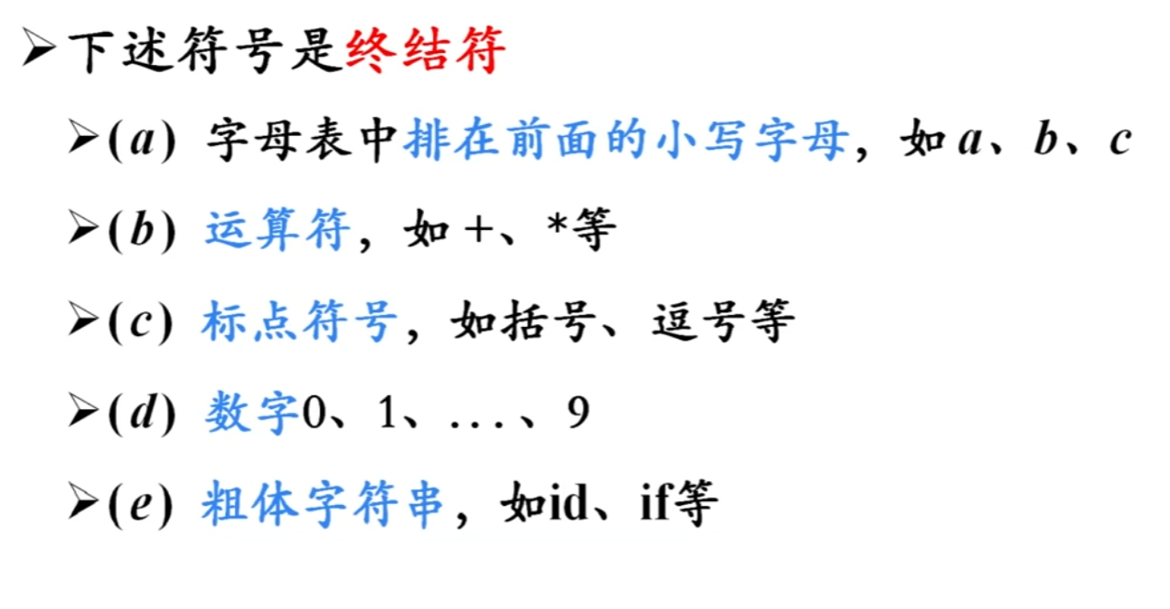 (终结符)- 终结符:文法所定义的语言的基本符号,有时也称为token