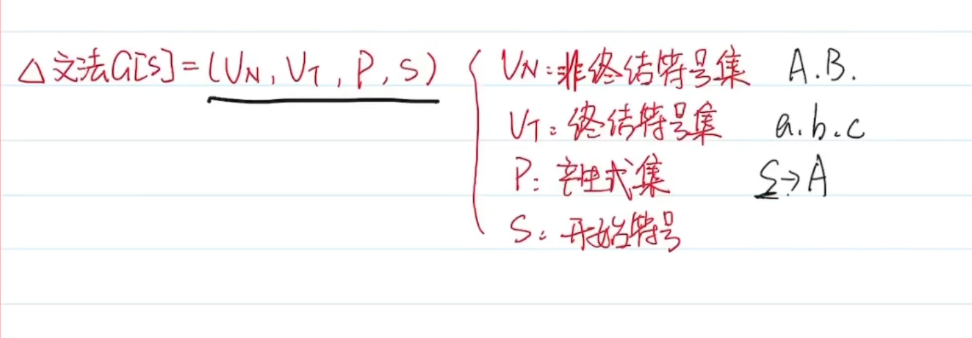 右线性文法:产生式右边的非终结符位置在最右侧,如: