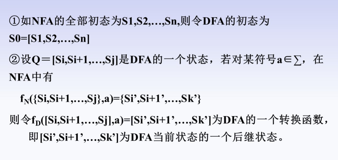 定义:对于字母表 Σ 上的任一NFA,必存在 Σ 上与之等价的DFA。