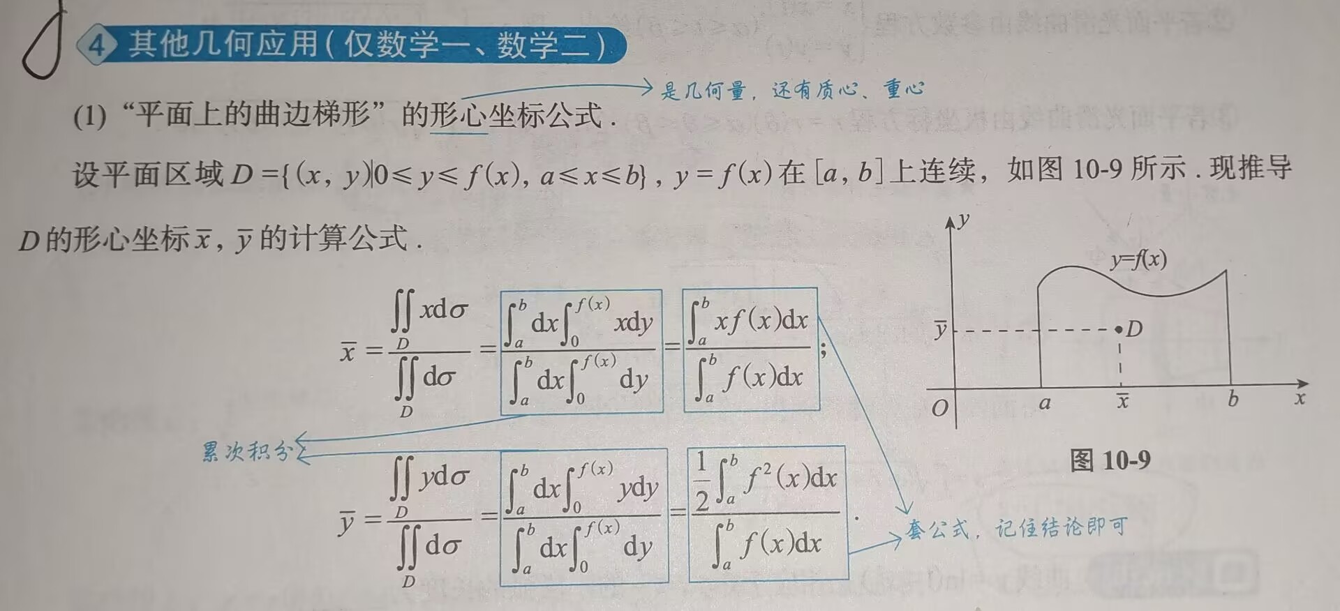 #### 1. “平面上的曲边梯形”的形心坐标公式