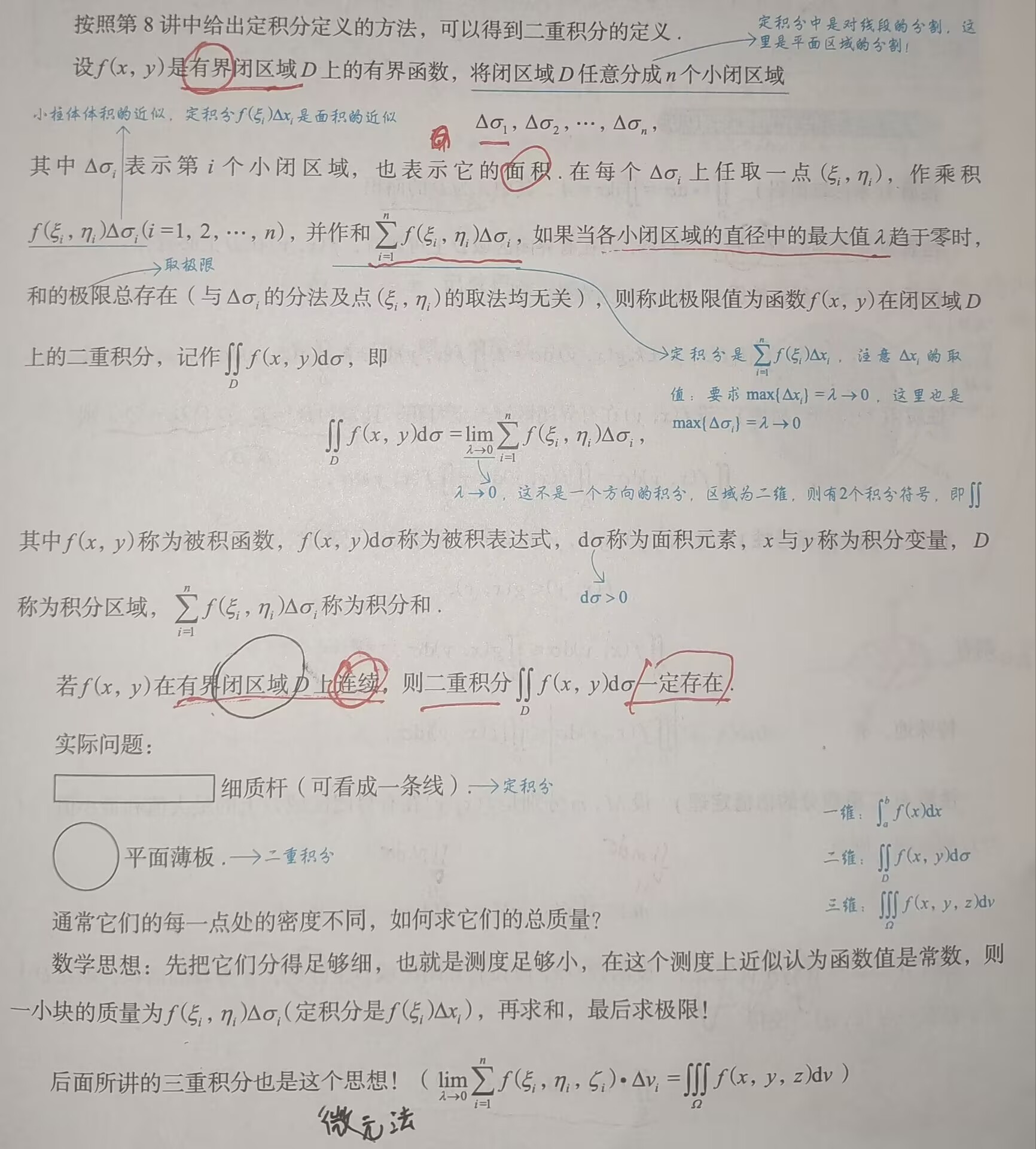 在有界闭区域D上可积时, 在D上必有界 - 🌟🌟🌟性质3(积分的线性性质):