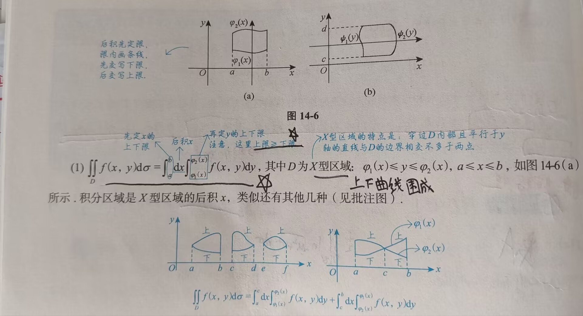 二重积分的下限都必须小于等于上限,这是二重积分的基本定义(