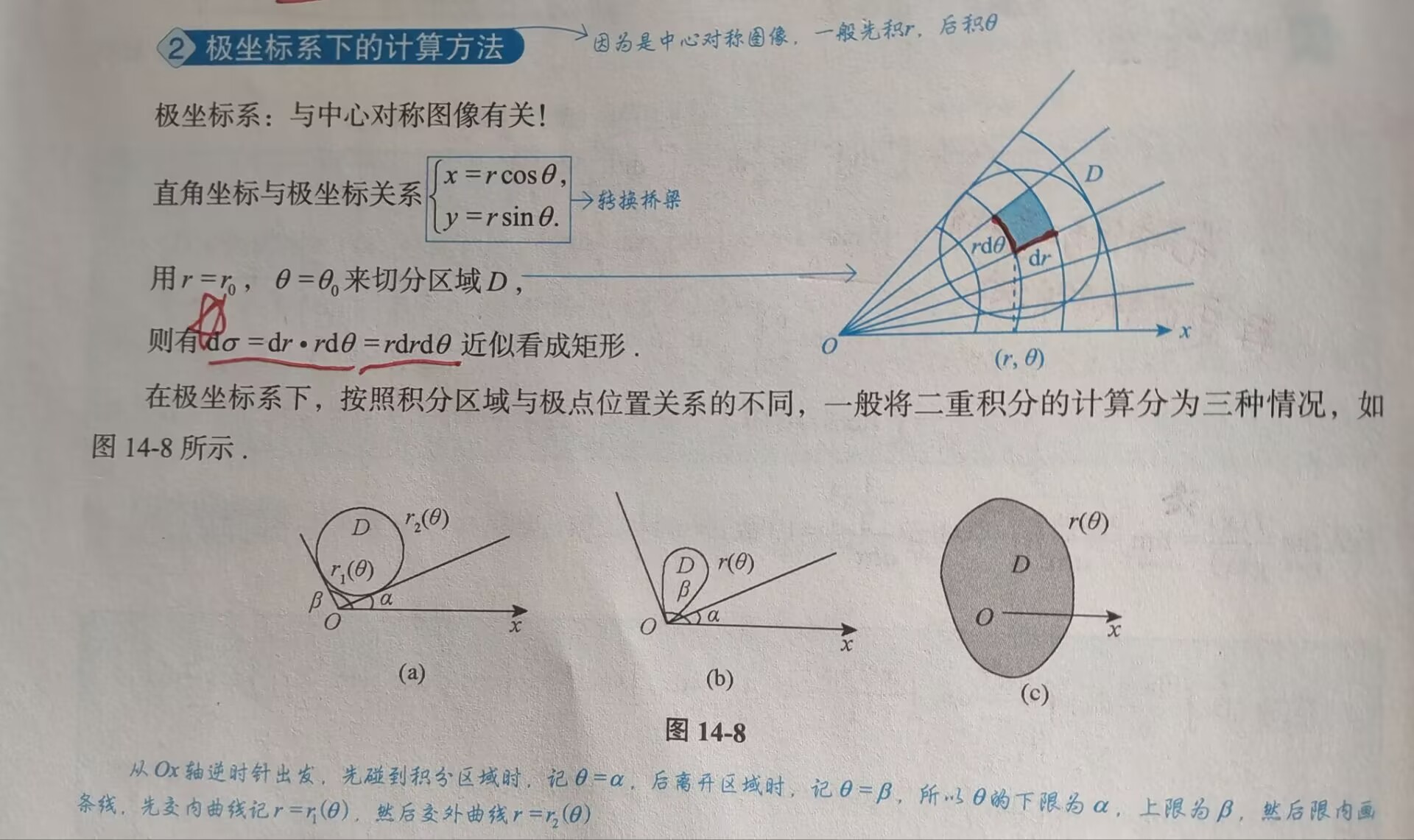 好好用微元法理解极坐标二重积分的计算,理解为什么