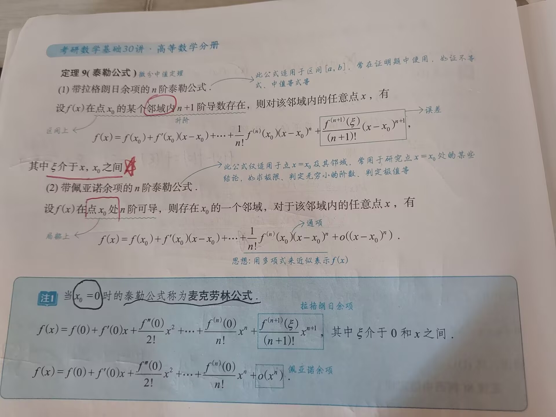 在点 的 某个邻域内n+1阶导数存在(区间内),则对该邻域内的任意点x,有: - 其中