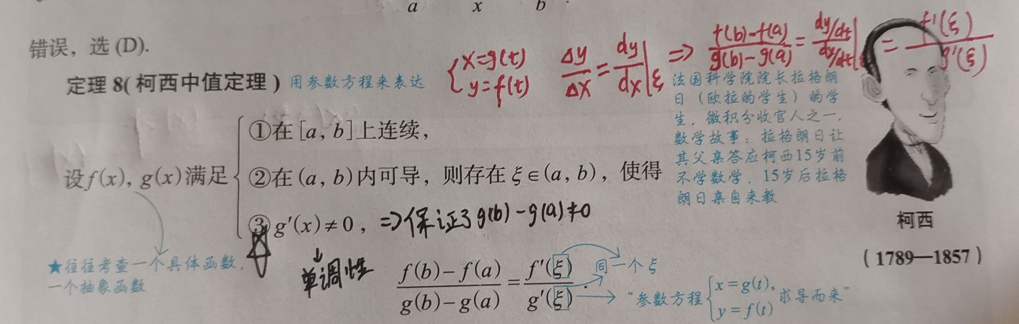 柯西中值定理与拉格朗日中值定理条件相似,可结合记忆