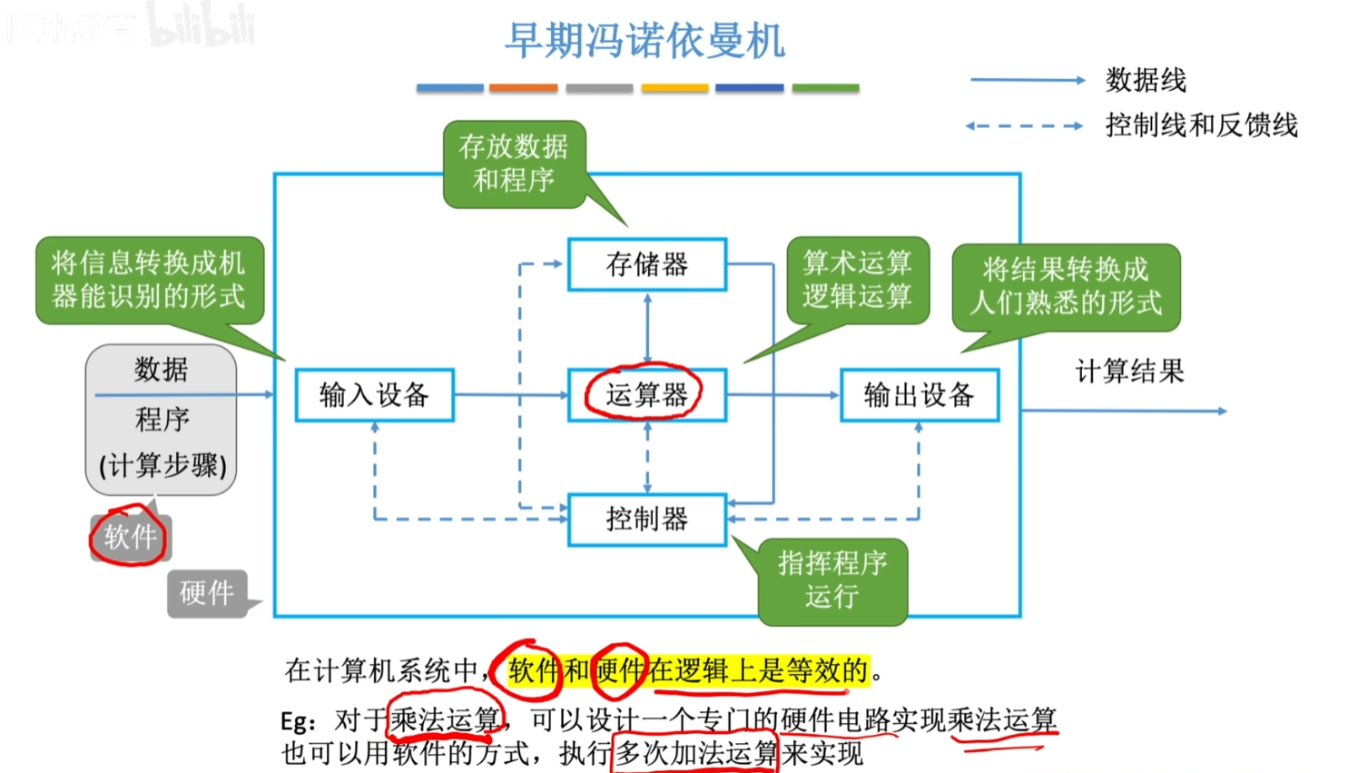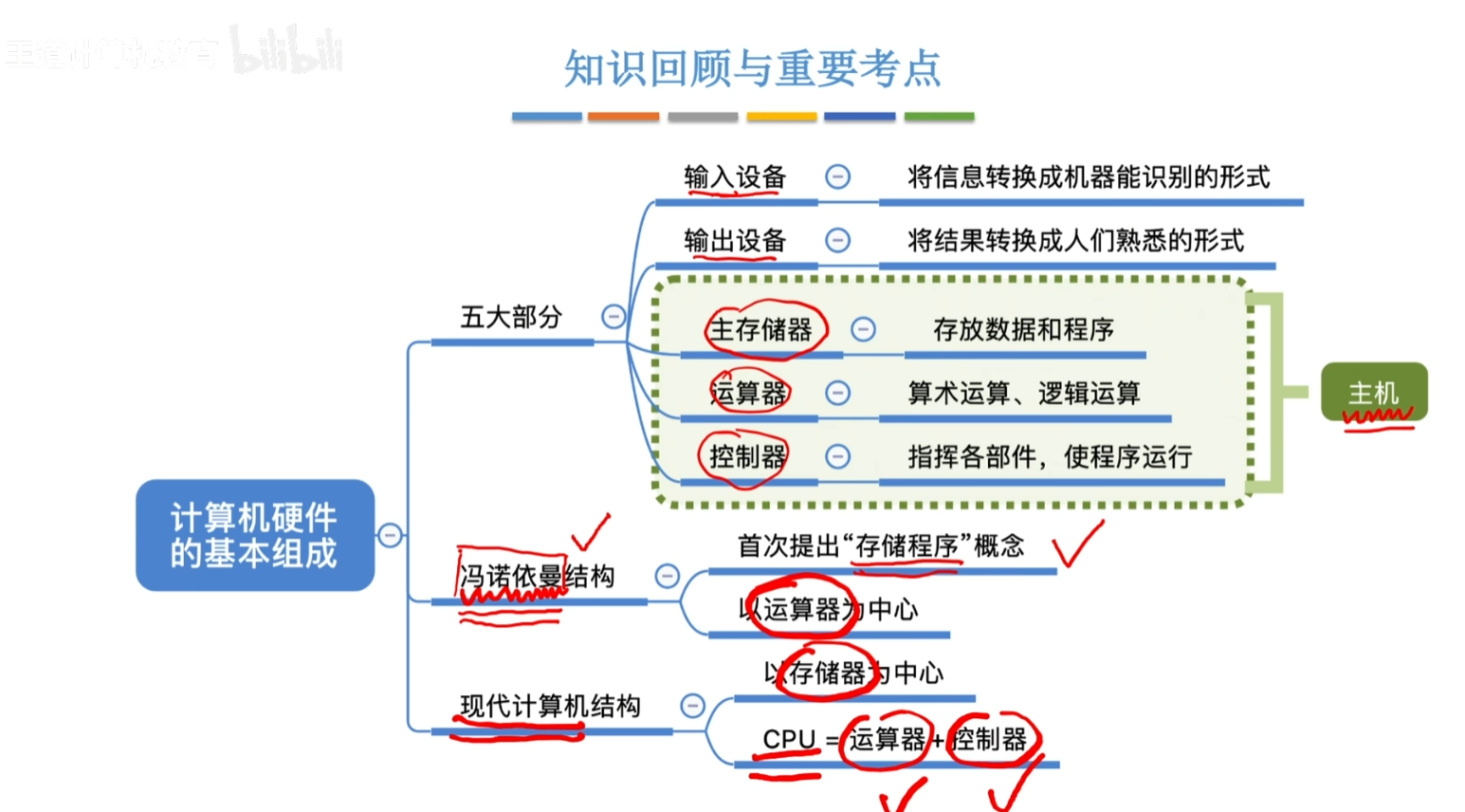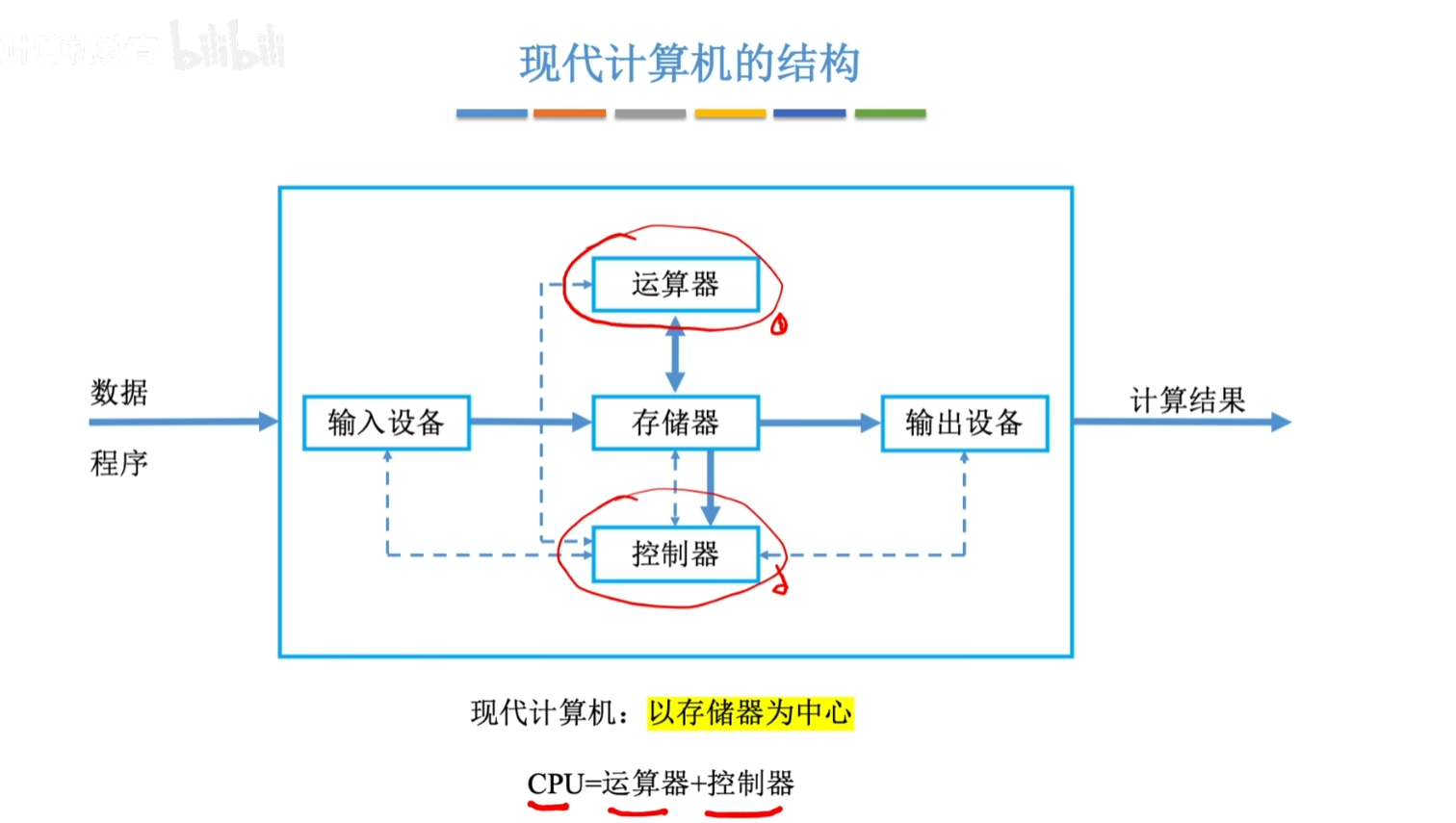 - 计算机由五大部件组成:存储器、运算器、控制器、输入设备和输出设备