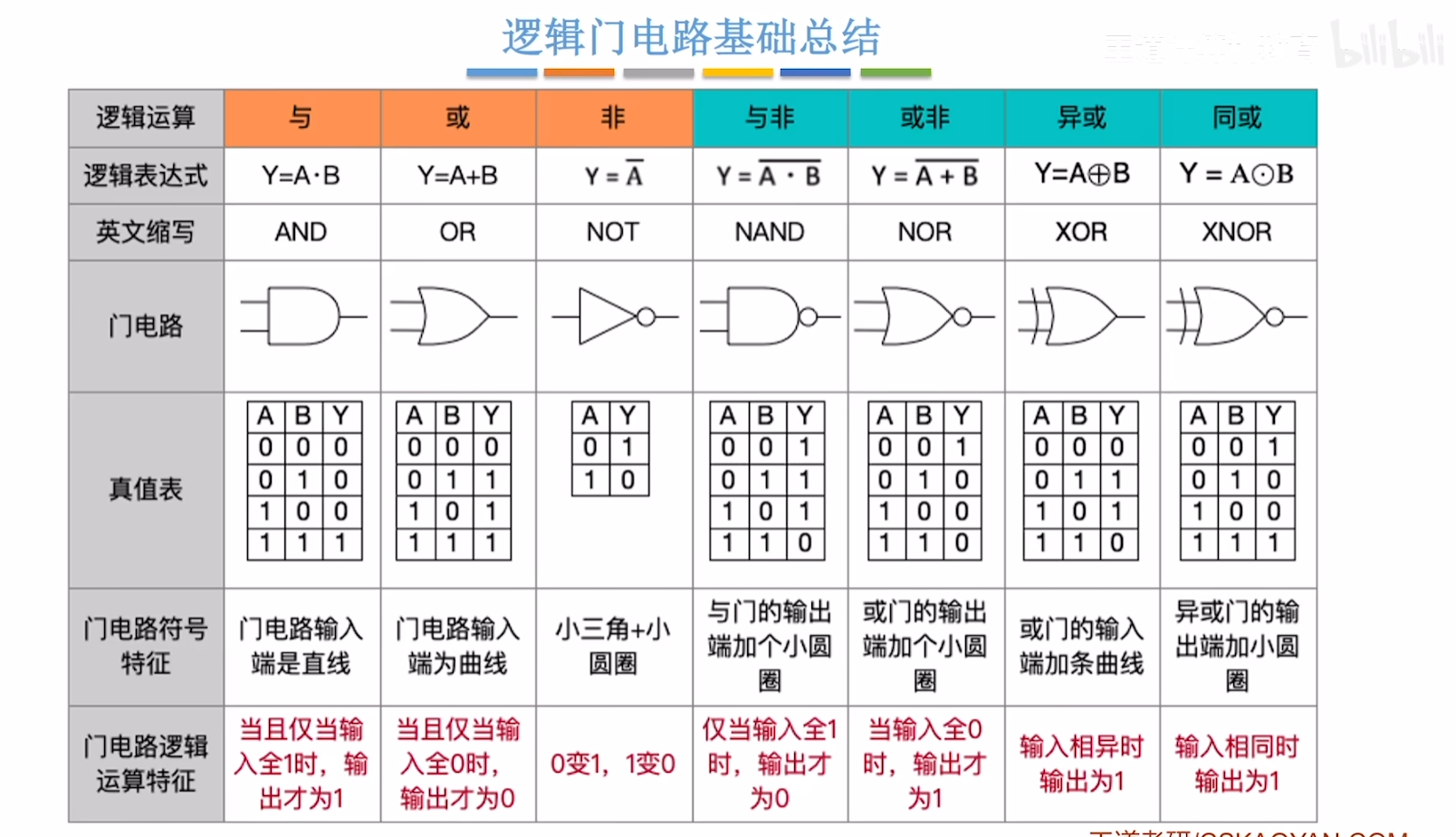 需要关注各种门电路的画法,理解各种门电路逻辑运算的特征