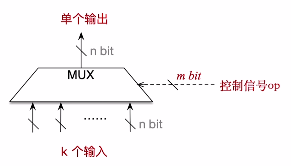 ,举个例子:若存在 8 个输入,编号为 0~7,则必须要有 个信号量来区分表示不同输入,故控制信号至少要有 3 位 - 控制信号常用 op 表示,一般用虚线表示