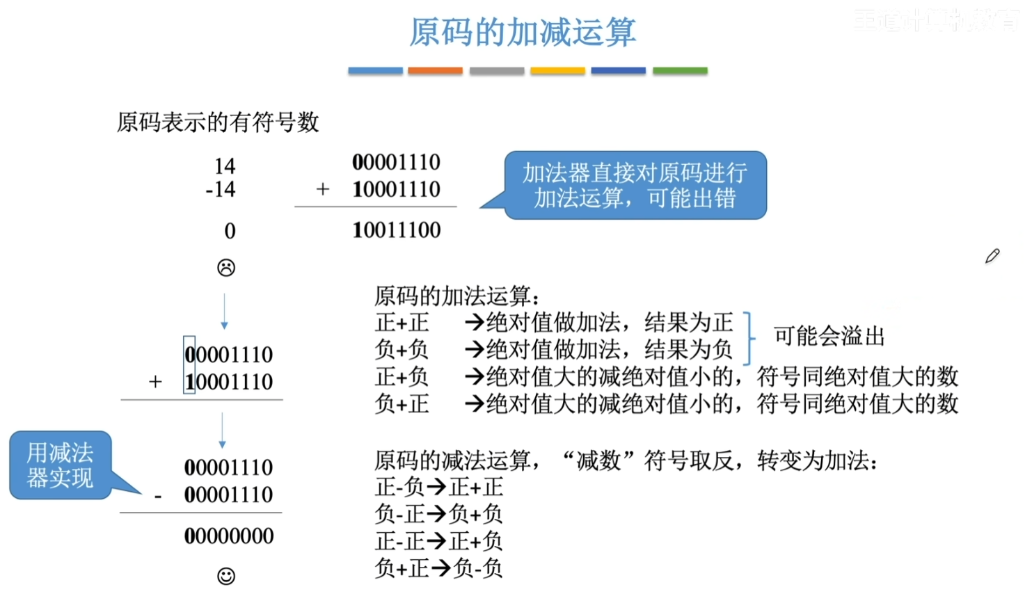 但计算机中通常使用补码进行计算,所以对原码的计算仅作了解即可