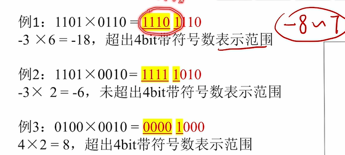- 因为低n位的最高位是符号位,若高n位均与低n位的符号位相同,则补码表示范围正常(因为运算结果只会用2nbit的寄存器暂存,最终只会保留低n位作为计算结果)