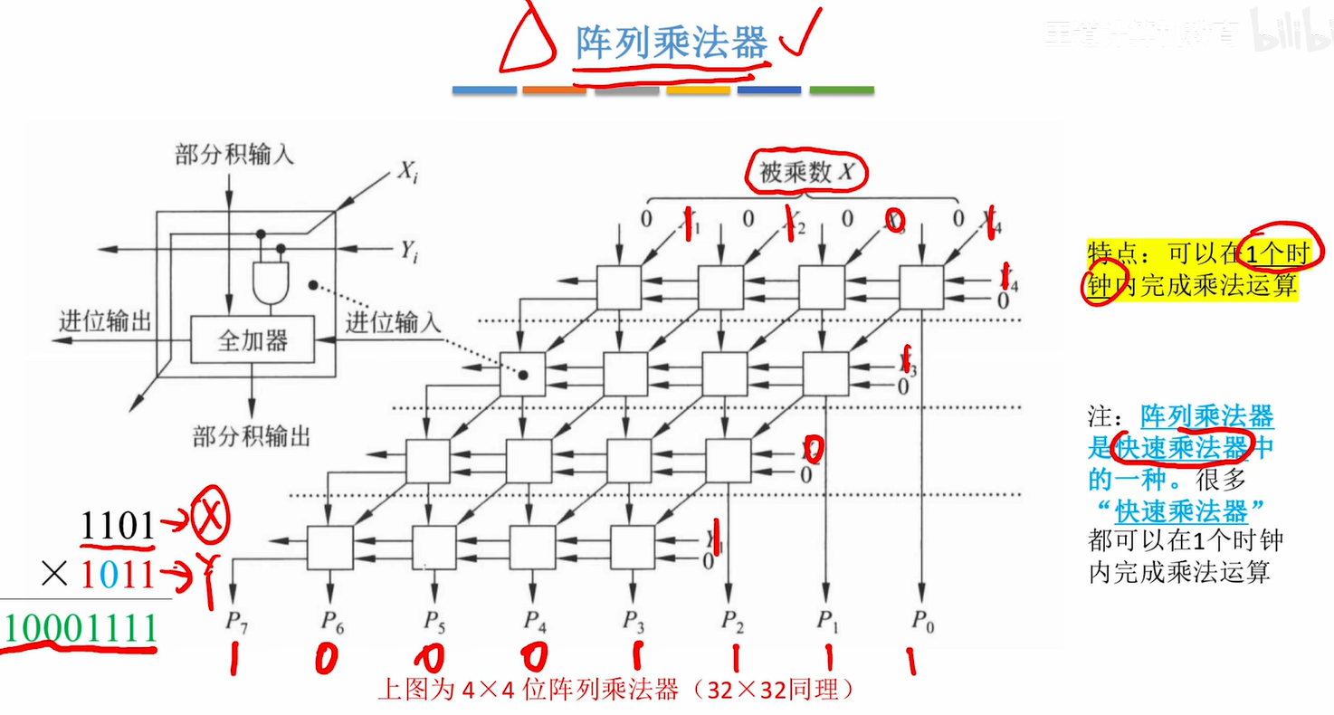 - 阵列乘法器(快速乘法器的一种)的运算速度最快------可在1个时钟内完成运算