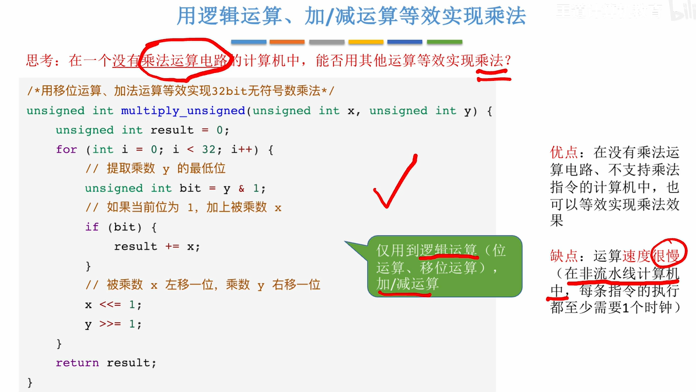 我们总能使用位运算、移位运算来实现乘法指令,只不过这种方式运行速度很慢