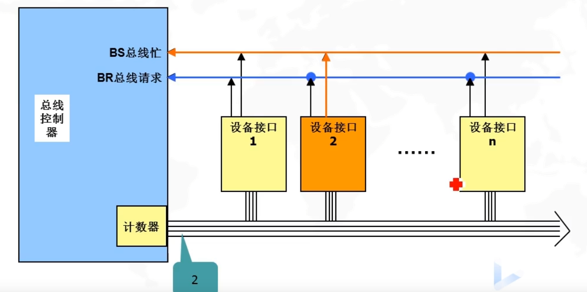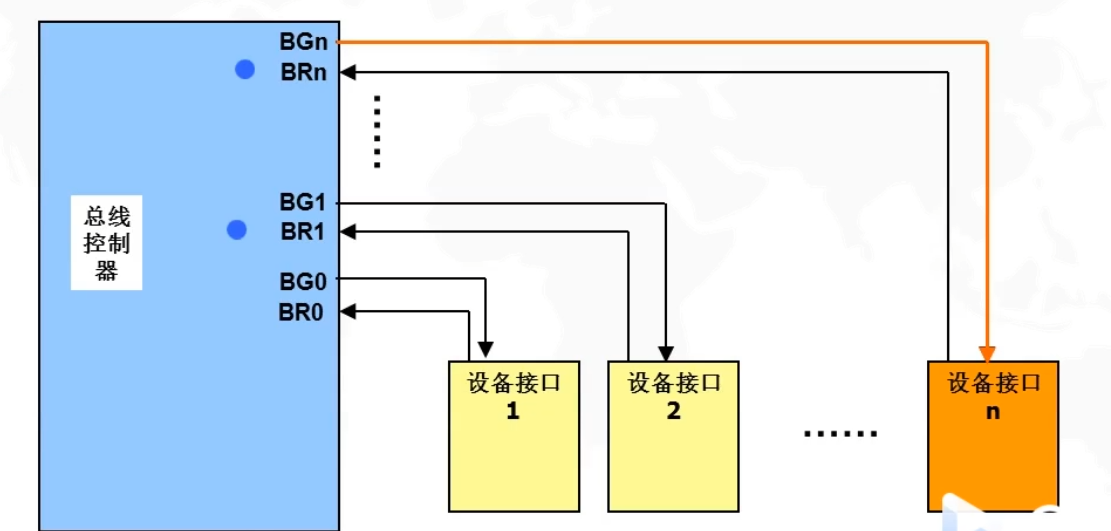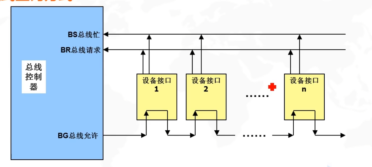 - 多个主设备同时竞争总线控制权时,采用某一种方法选择一个主设备优先获得总线控制权,称为总线仲裁