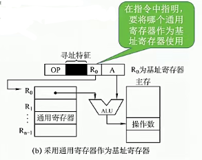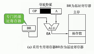 - 前提:操作数的有效地址需要通过某个基础地址来形成,需要设置一个基址寄存器(BR)