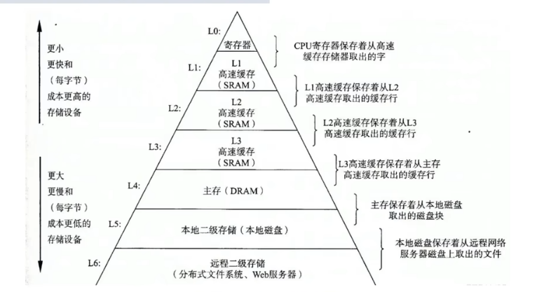 - CPU会优先到Cache中查找是否存在指令所指信息,如果能找到,就直接拿信息并返回;如果找不到就再到主存中找,找到后复制副本到Cache中,再返回;如果都没有,那就去外存中查找,找到后复制副本到主存和Cache中