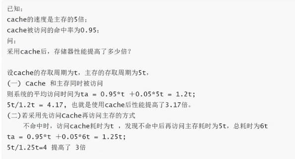 - 计算方式:效率 = tc / Ta (Cache访问一次所需时间/平均访问时间)