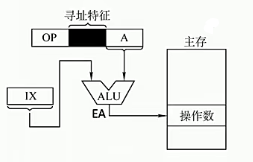 - 定义:操作数的有效地址EA 等于指令字中的形式地址A与变址寄存器(IX)的内容相加