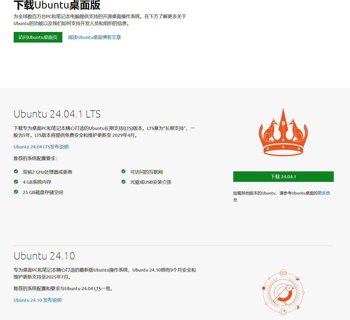 - 前往ubuntu官网下载ubuntu桌面版,也可前往清华大学开源软件镜像站下载(注意是ISO文件)