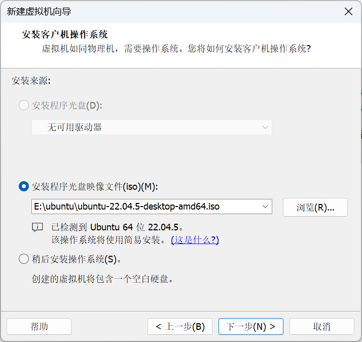 - 选择安装光盘映像文件(iso),即:ubuntu桌面版的iso文件