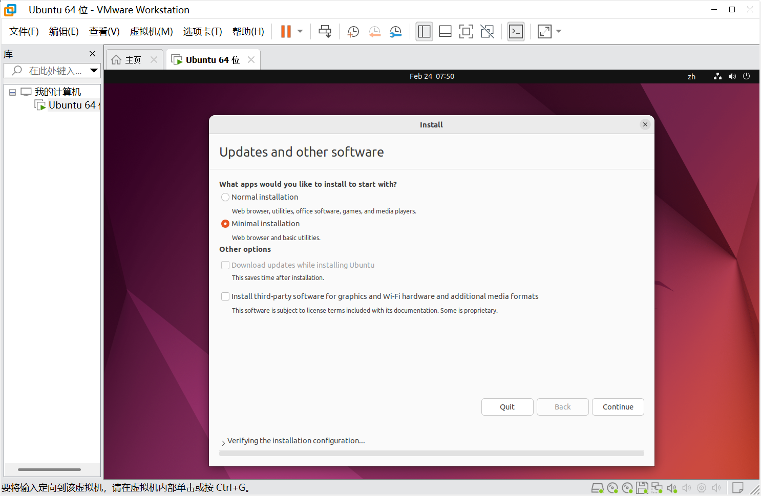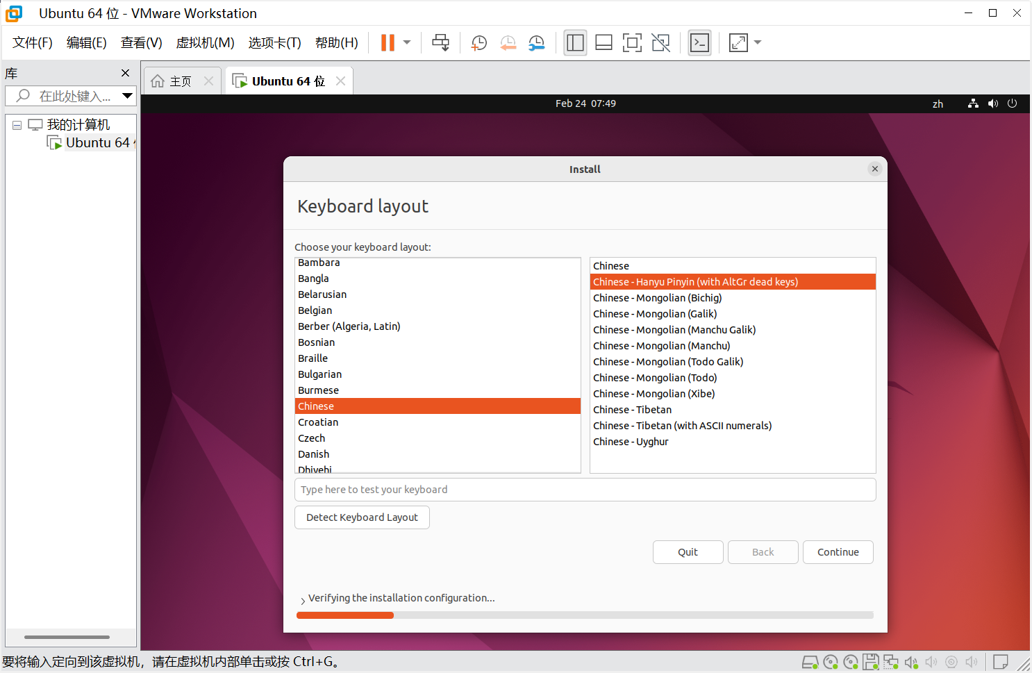 - 启动ubuntu,选择汉语设置并继续安装ubuntu